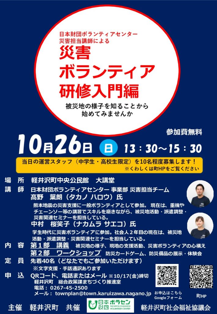 災害ボランティアに関する研修会開催のお知らせ